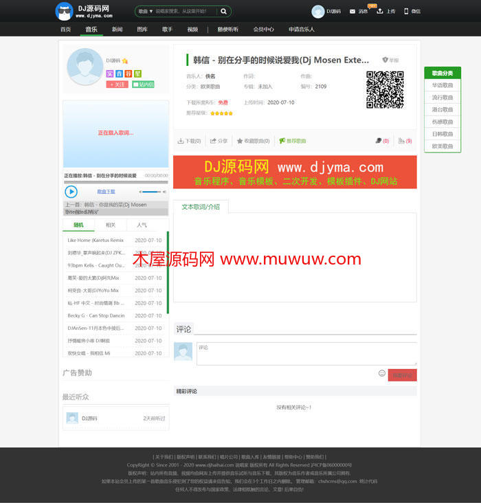 cscms模板 说唱家模板 5sing模板 音乐模板 dj源码