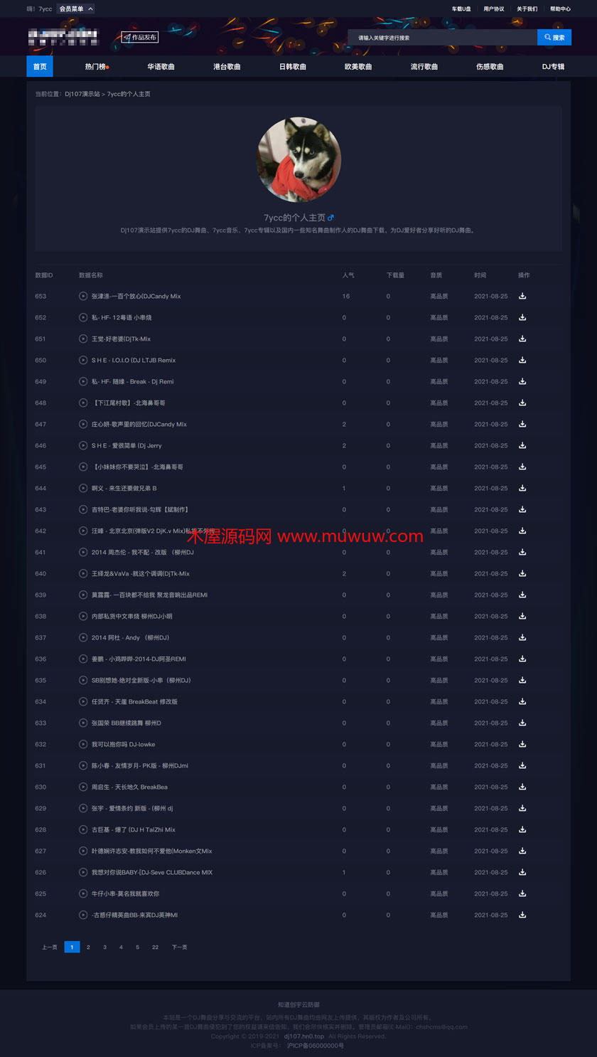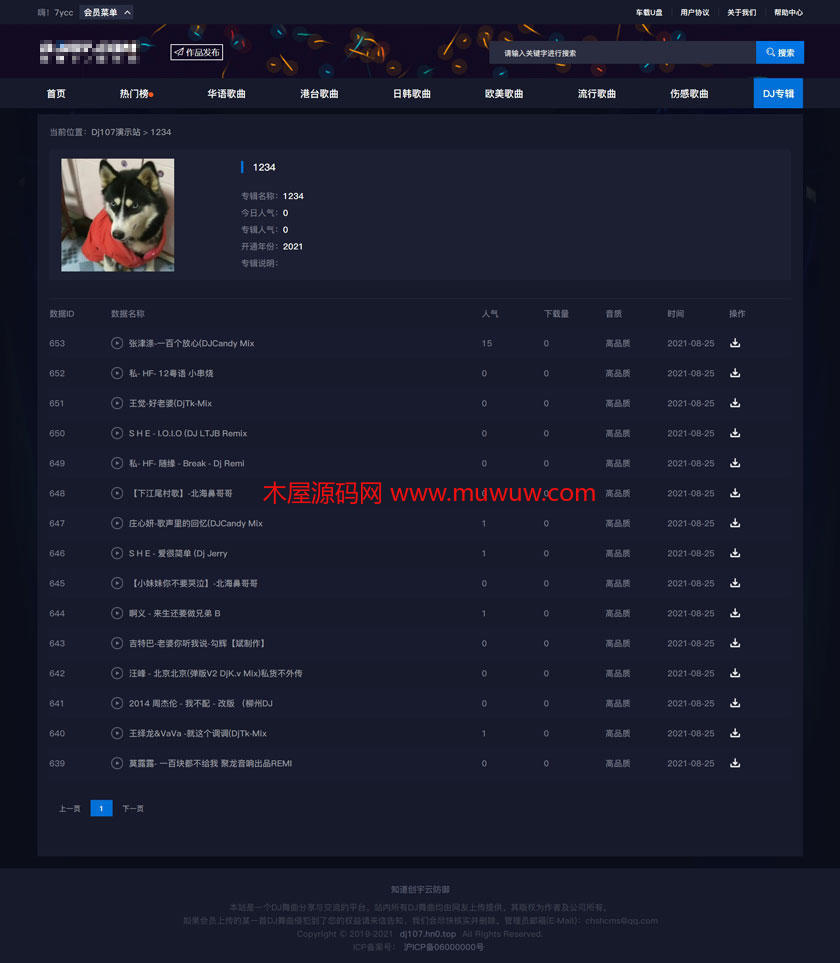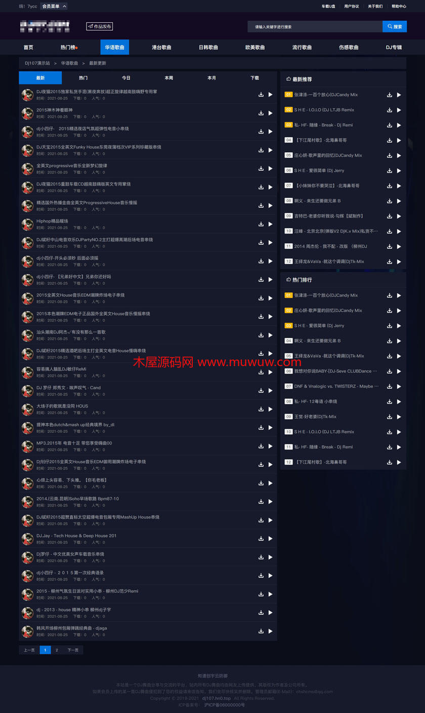 Cscms v4.2 dj107风格音乐网站模板 自适应dj模板 utf-8