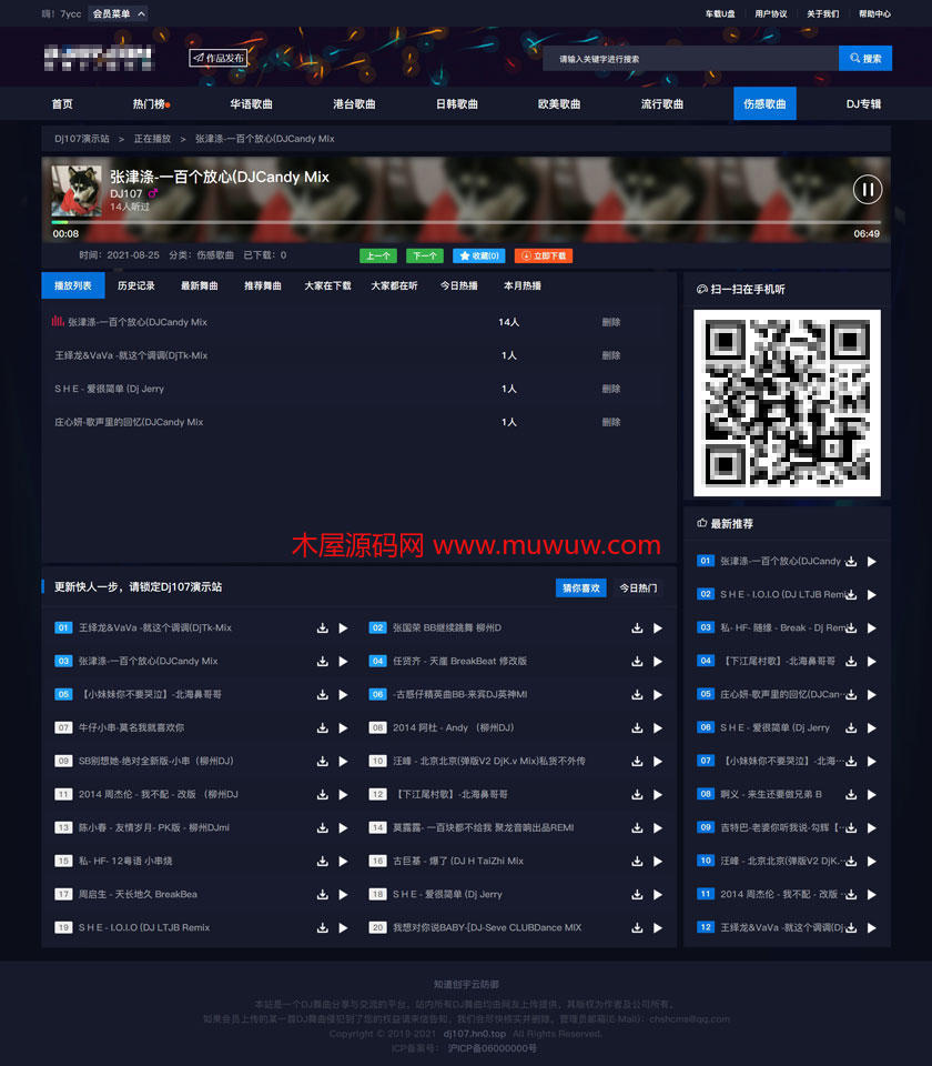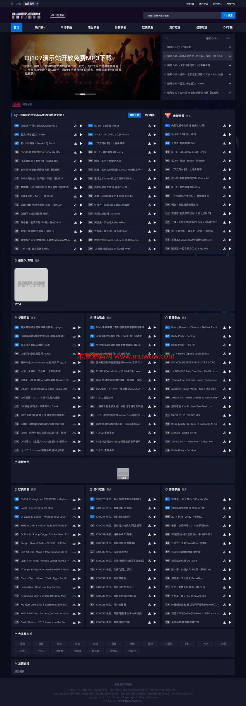 模板是自适应模板非常大气,是dj95模板的二次美化版本,播放器部分做了优化修改,更加美观大气,模板风格来自dj107;