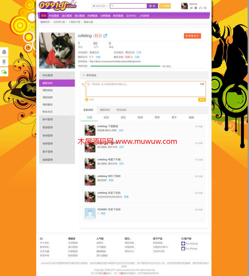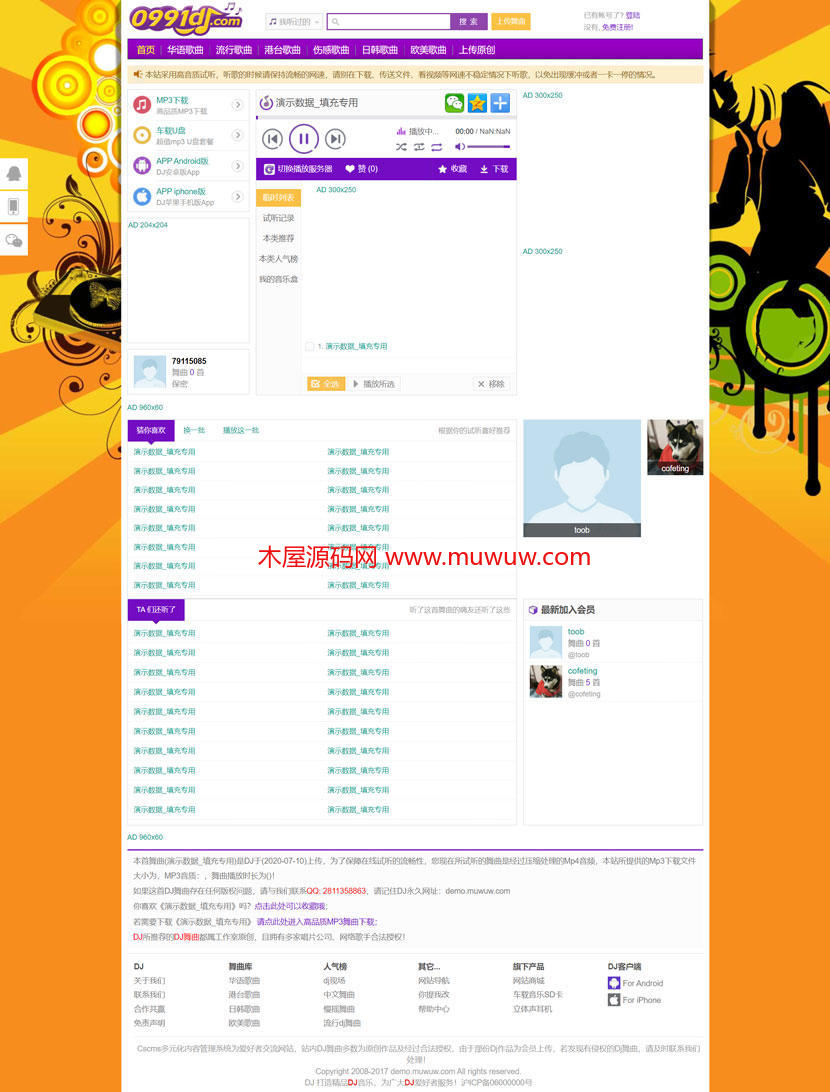 cscms v4.x 0991DJ模板 水晶dj紫色风格模板