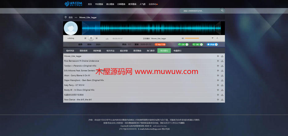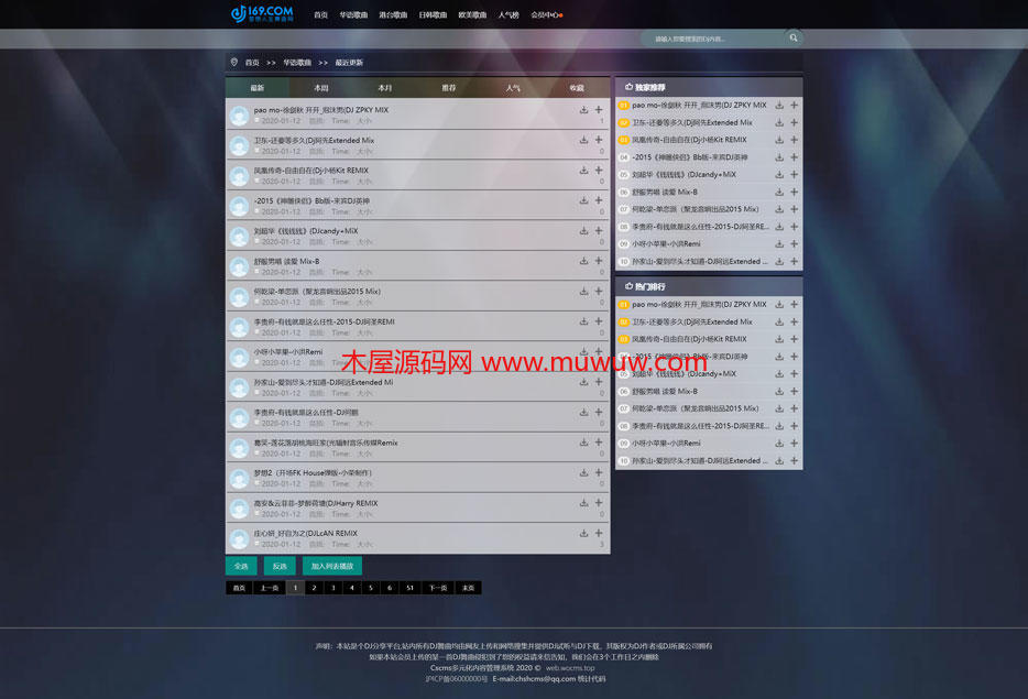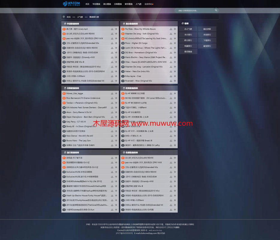 Cscms v4.2 djcc或dj169风格自适应舞曲模板 utf8+gbk双编码。