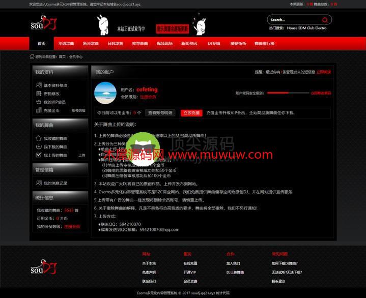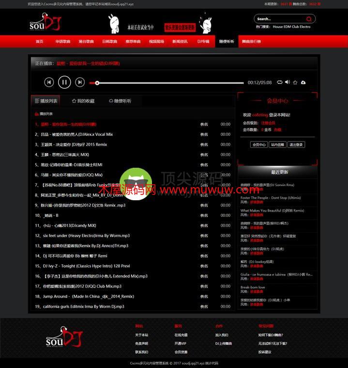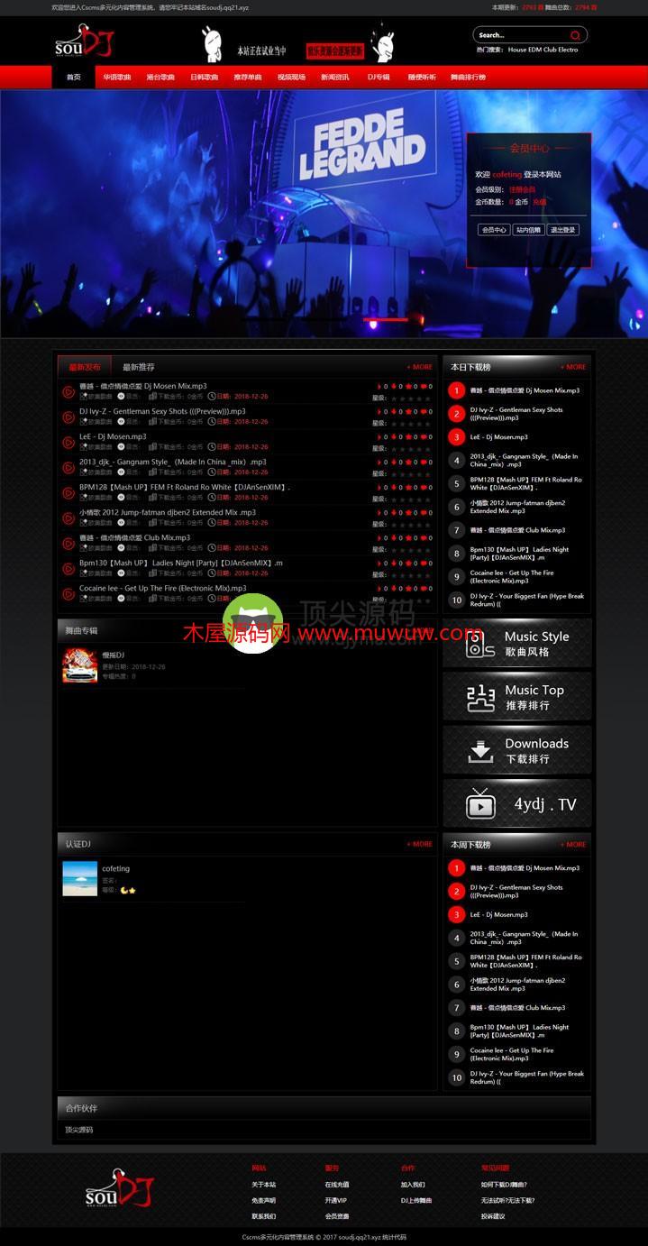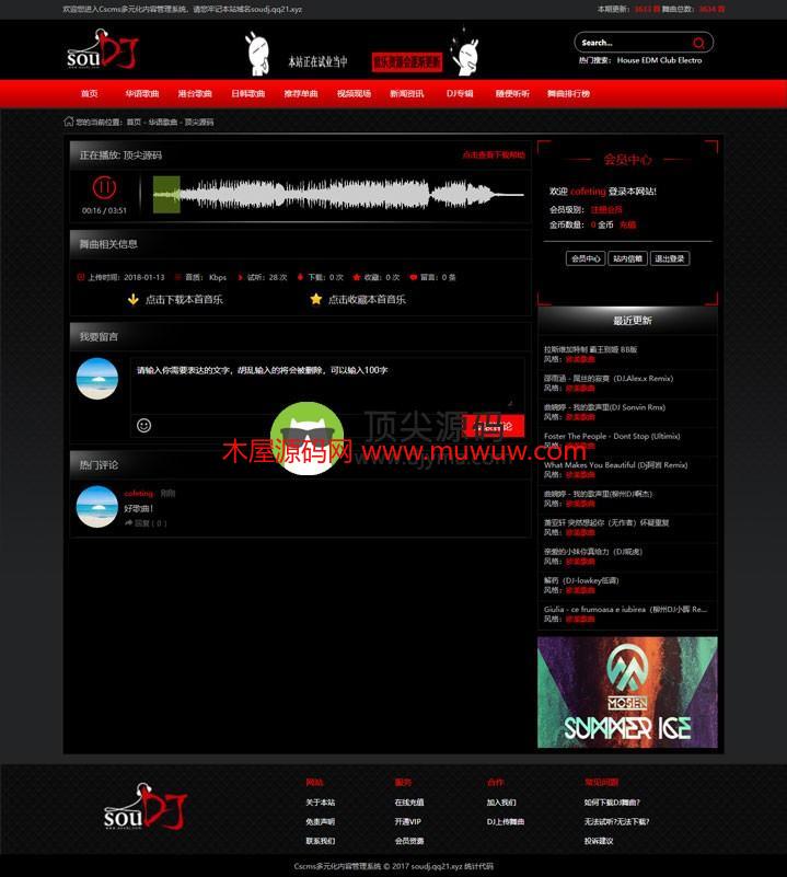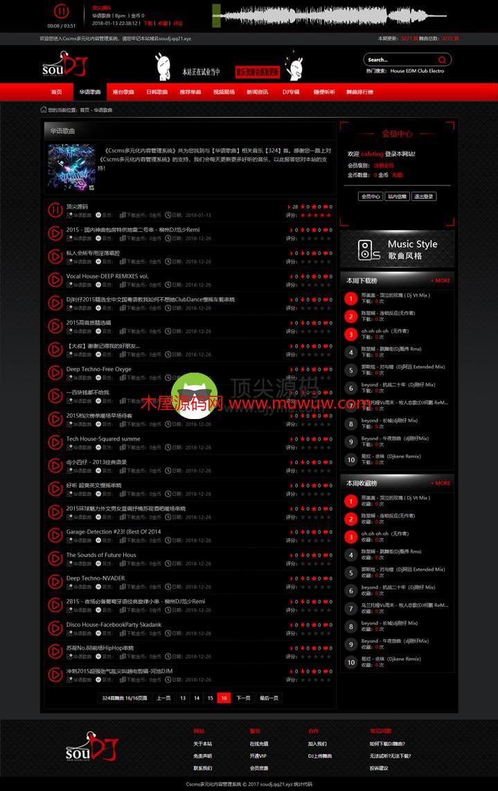 Cscms V4.1 搜DJ soudj 网站模板 带波纹生成演示地址:立即进入模板完整非常适合做舞曲网站